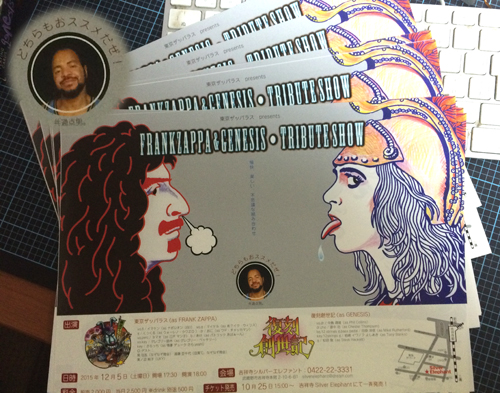 ライヴでは実際のサウンドをPAさんにながしてもらったAfterglowとMore Trouble Every Dayのパクリネタなど検証など、結構、Frank Zappaとの共通点は多かったりする。…多くはないか?そんなわけでフライヤーにもチェスター・トンプソンに登場願った。今回のライヴは東京ザッパラスが主催だったが、フライヤーはPhil中島が担当。毎度の広告宣伝隊長として頑張らさせてもらった。もちろんイラストは中島画伯だ。いやー、楽しかった。